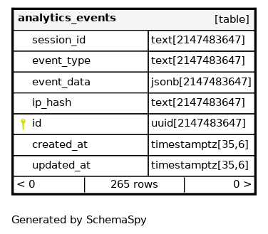 | analytics_events_pkey | Primary key | Asc | id |