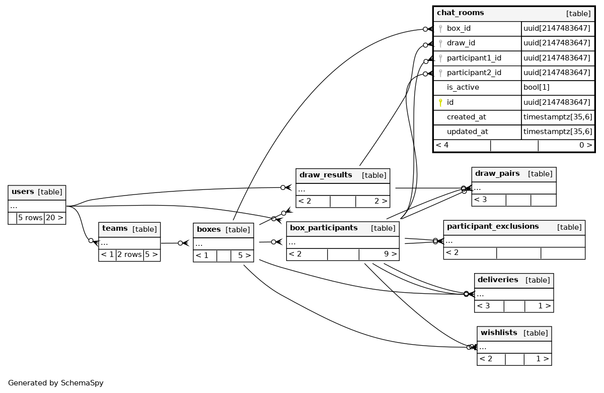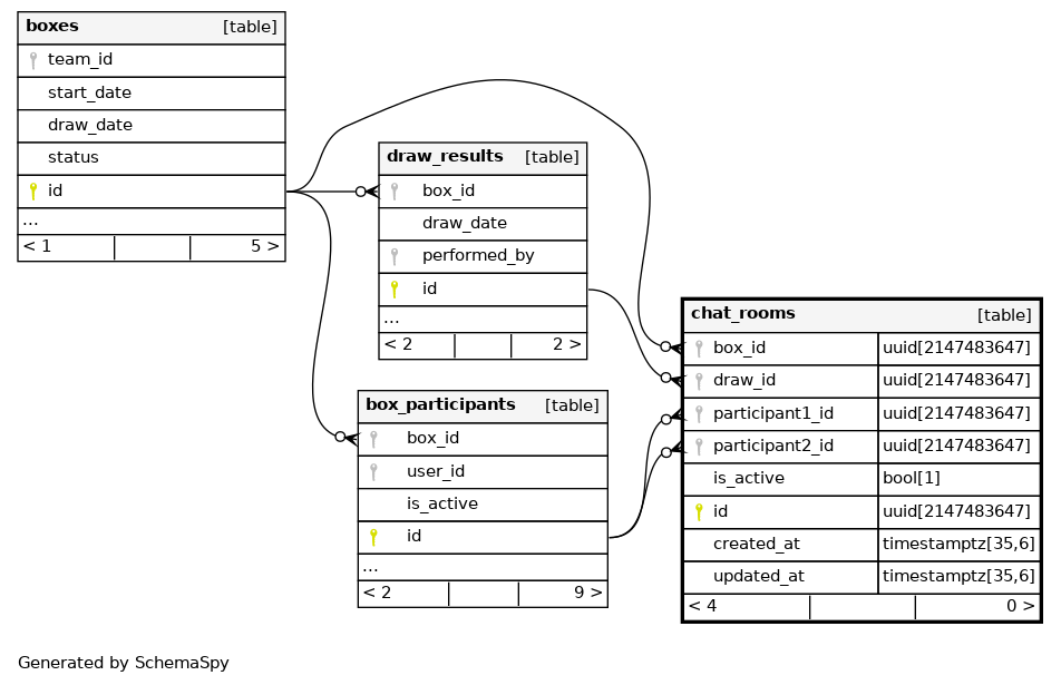 | uq_chat_rooms_participants | Must be unique | Asc/Asc/Asc | draw_id + participant1_id + participant2_id |