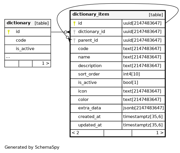 | ix_dictionary_item_dictionary_code | Must be unique | Asc/Asc | dictionary_id + code |