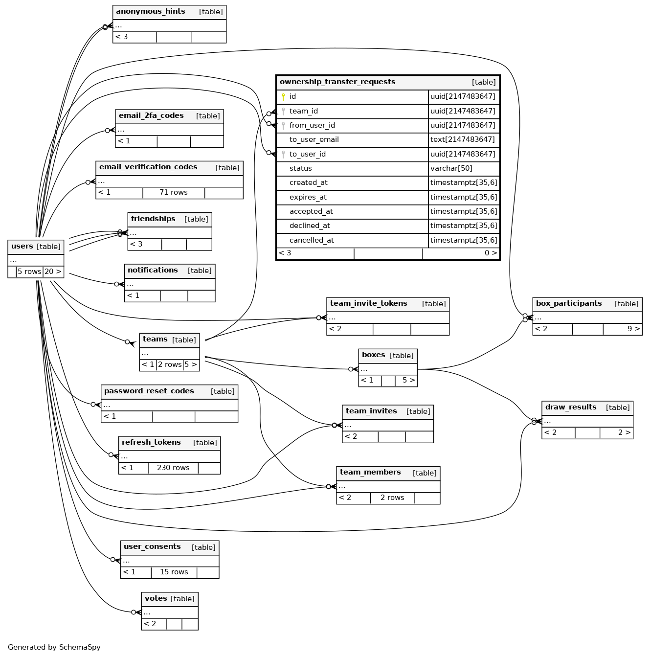 | ownership_transfer_requests_pkey | Primary key | Asc | id |