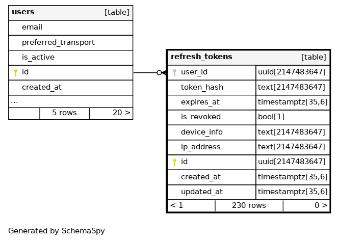 | refresh_tokens_pkey | Primary key | Asc | id |