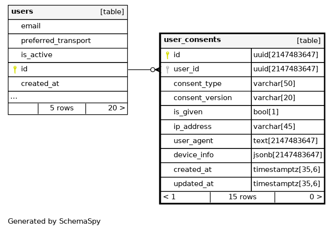 | uq_user_consents_unique | Must be unique | Asc/Asc/Asc | user_id + consent_type + consent_version |
