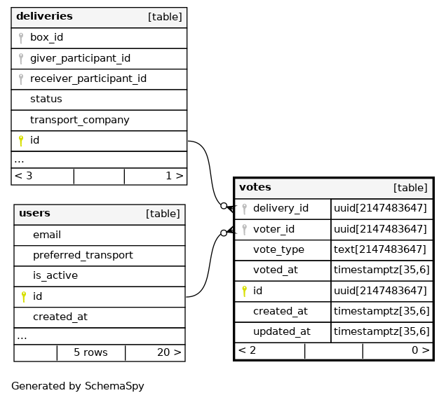 | uq_votes_delivery_voter | Must be unique | Asc/Asc | delivery_id + voter_id |