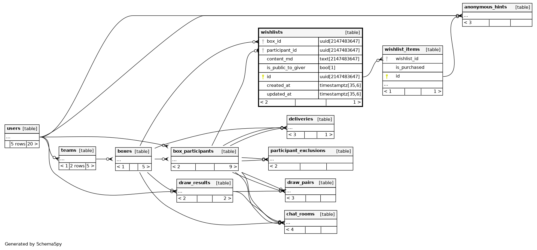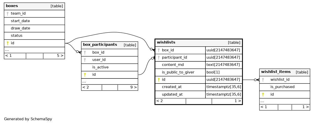 | uq_wishlists_participant | Must be unique | Asc | participant_id |